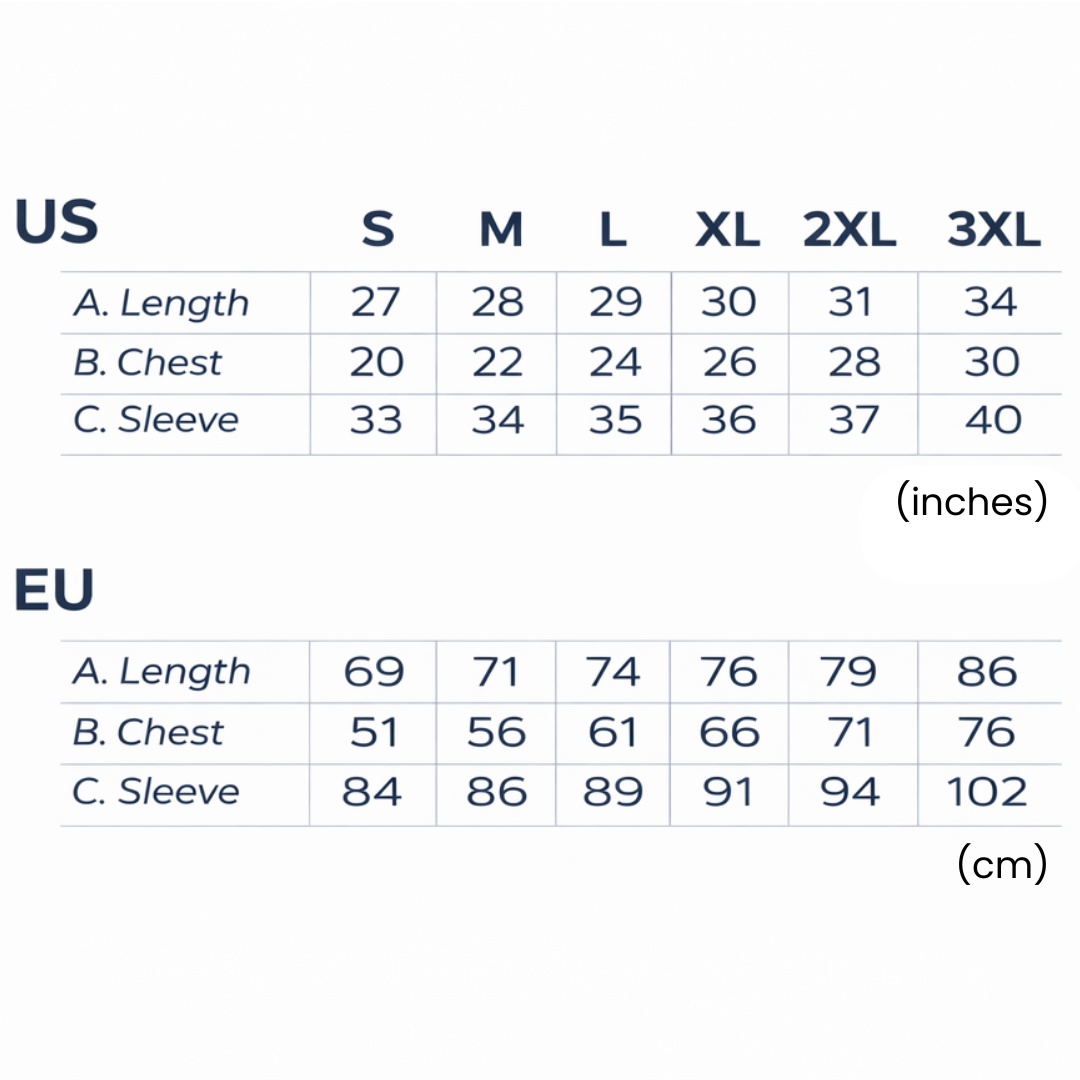 Our fit runs true to size — designed to be balanced, comfortable, and easy to wear. For a classic look, choose your regular size.